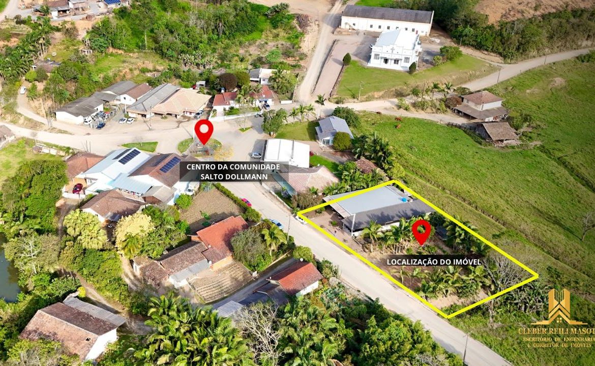 Situada a apenas 6 km do centro de Vitor Meireles, na área central da comunidade do Salto Dollmann, próxima a comércios e escolas, em rua pavimentada e com acesso completo à rede de infraestrutura.